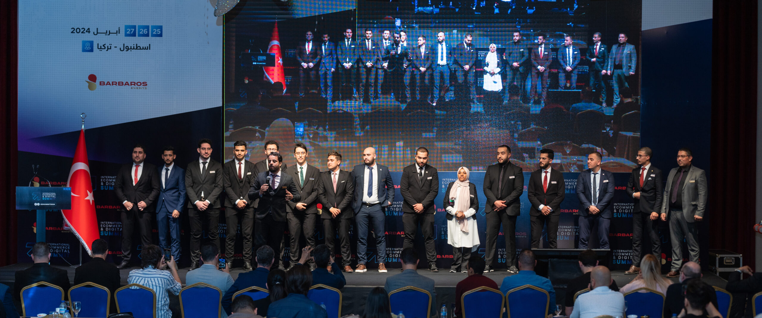 Customized event theater arranged according to the conference theme and identity